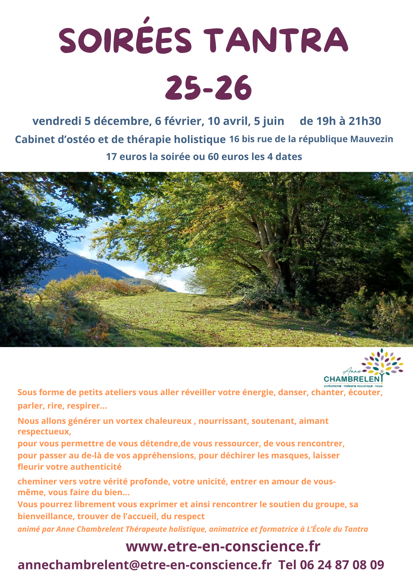 Participation : 17€ (ou 60€ les 4 dates) sur inscription par mail ou téléphone